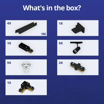 | Manufacturer Name | Complete L shaped 1-Phase Track Set Black incl. 9x Spot fixture + GU10 2700K 3W Dim – 2 x 2 meter i | |