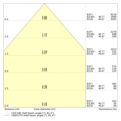 The colour code is a combination of colour rendering (CRI) and light colour (Kelvin). The first number indicates the colour rendering (1 = very poor colour rendering, 9 = maximum colour fastness). The second and third number contains the light colour. Example: the colour code 830 consists of good colour rendering (8) and warm white light (3000K). |