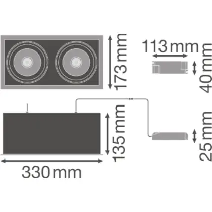 Ledvance LED Spot Square Multi Tiltable Black-White 2x30W 5400lm 38D - 830 Warm White | Cutout 320x160mm