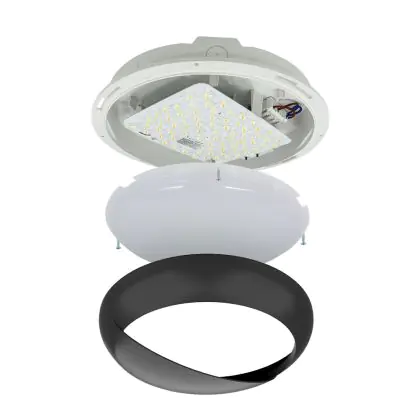 Noxion LED Bulkhead Pro V2 White 12/16/20W 2400lm - 830-840-865 CCT | 325mm - IP65 - Motion and Light Sensor + Eyelid Ring Black