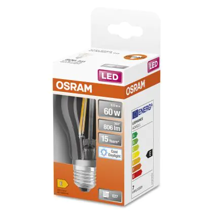Osram Classic LED E27 Pear Filament Clear 6.5W 806lm - 865 Daylight | Replaces 60W