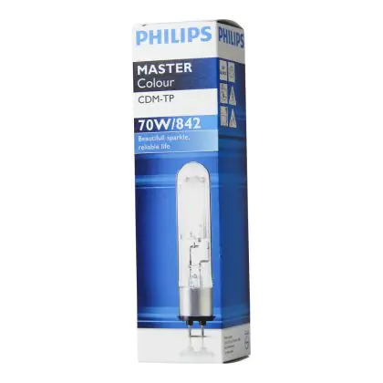 CDM-TP light bulbs are ceramic burner double casing discharge lamps. They are characterized by excellent luminous efficiency and colors will remain stable throughout the life of the lamp.Philips CDM-TP 70W 842 PG12-2 are fitted with a PG12-2 type base, and will be very easy to install in your old halogen luminaires. With a long average life of 16000 hours, Philips CDM-TP 70W 842 PG12-2 halogens are economical and do not require frequent replacement.