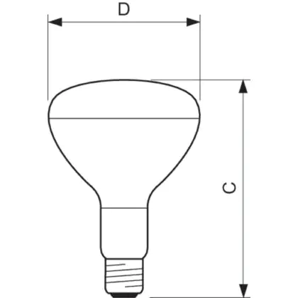 The R125 hard glass, blown reflector shape ensures that heat is directed out through the front of the lamp for maximum efficiency, preventing heat from dissipating through the back of the lamp.